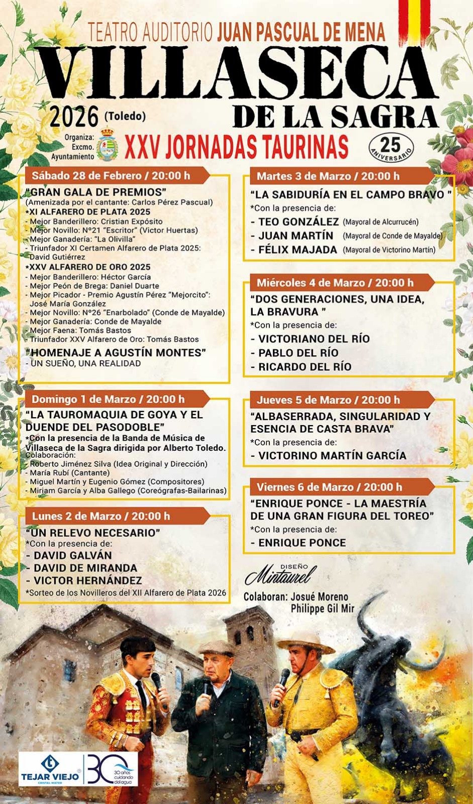 La apertura, el sábado 28 de febrero, tendrá un marcado carácter institucional y emotivo con el homenaje a Agustín Montes, bajo el lema “Un sueño, una realidad”, seguido de la Gala de entrega de premios del XI Alfarero de Plata 2025 y del XXV Alfarero de Oro 2025. Una noche para reconocer a los protagonistas del ruedo y del campo bravo, poniendo en valor el esfuerzo, la excelencia y el triunfo, con nombres propios como David Gutiérrez y Tomás Bastos, grandes triunfadores del último año en Villaseca, XI Alfarero de Plata y XXV Alfarero de Oro repectivamente.