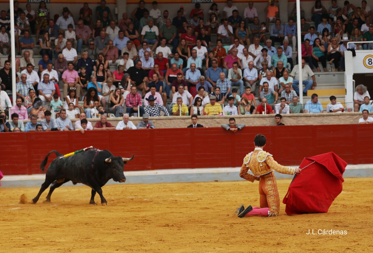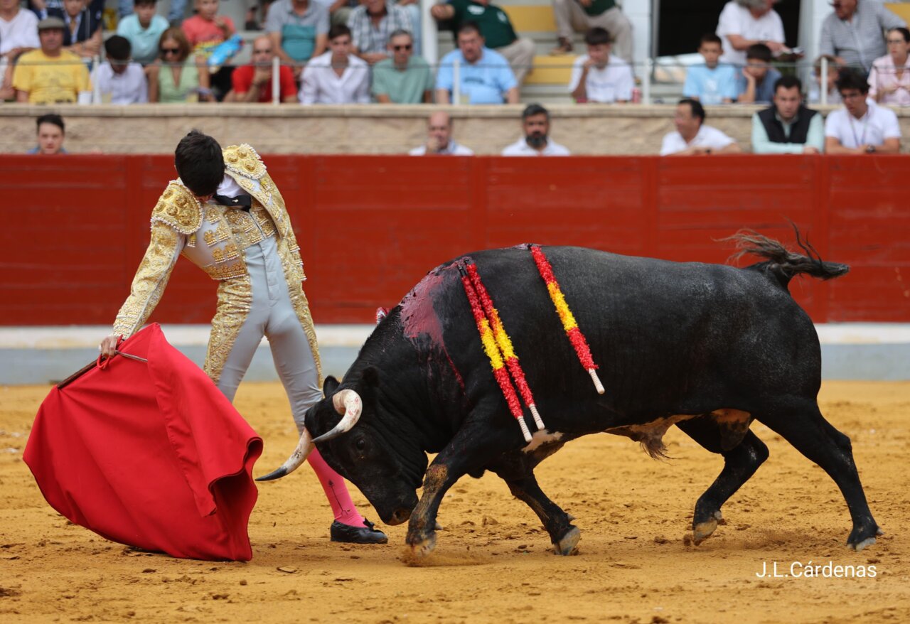 A «Malvo», el quinto, le aplaudieron su asaltillada presentación. Cárdeno oscuro de pelo y con el número 72 en el costillar, no repitió en el recibo de Cristiano Torres. Metió los riñones el de Ana Romero en el peto en el primer puyazo y se repuchó en el segundo. Juan Carlos Rey dejó dos meritorios pares de banderillas, mientras en la lidia de «Venturita» se coló el animal por el pitón derecho. De rodillas le cambió la embestida Cristiano Torres al de Ana Romero, dos veces, y calentó los tendidos. Se la puso muy bien a zurdas el novillero aragonés al cornúpeta y le sacó limpios naturales a una embestida sosa aunque humillada. Naturales de gusto, temple y composición, que no llegaron más a los tendidos por la falta de chispa del utrero, que por el derecho tenía peligro y poquísimo viaje. Muy firme de nuevo el novillero aragonés que dio la sensación de llegar hecho a la alternativa. Cerró por muy ajustadas bernardinas. Pero la espada no es su fuerte, al menos hoy.